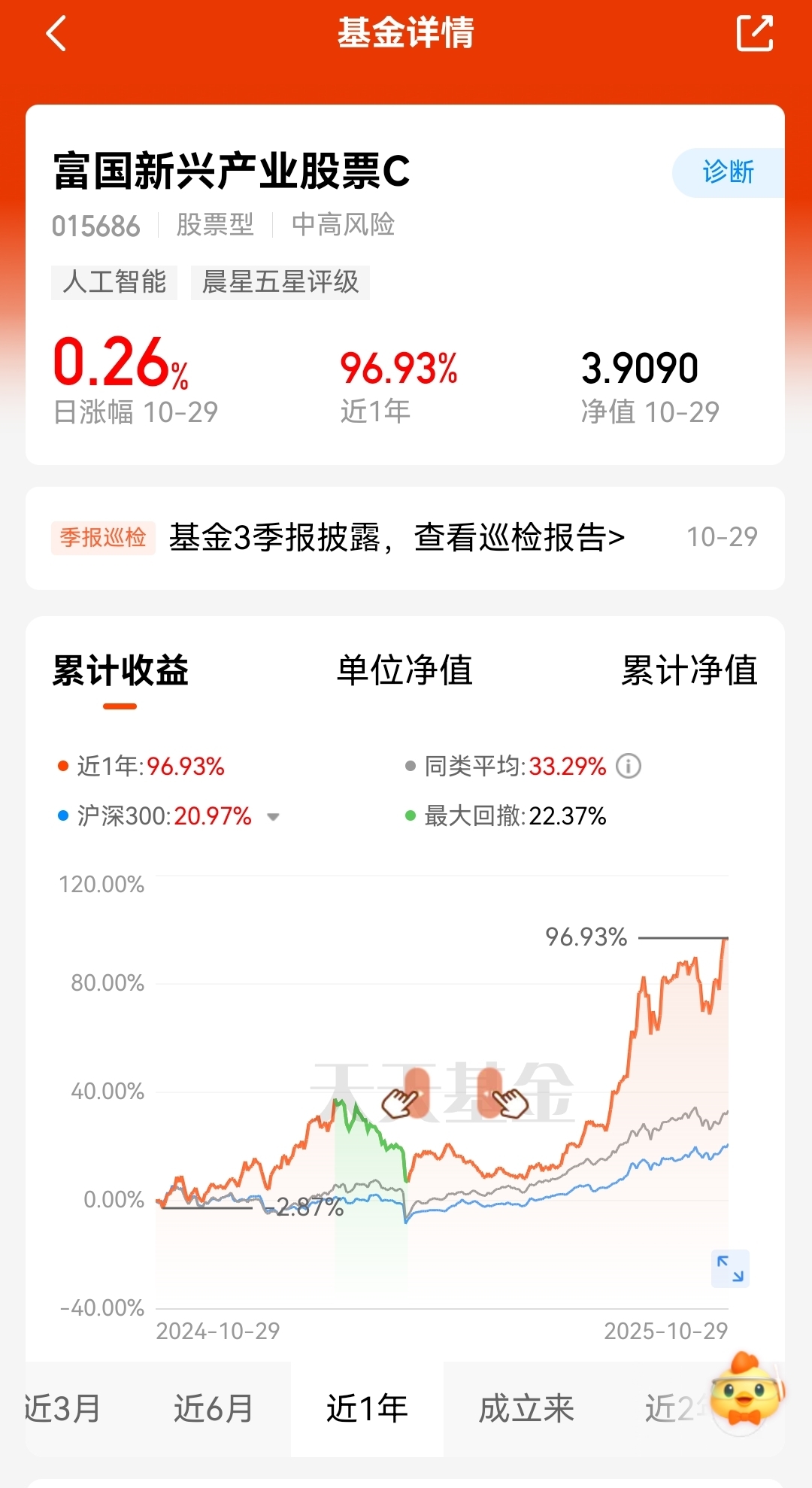 $富国新兴产业股票C$ 近2年涨了130%,重仓中际旭创、寒武纪这些硬核科技股,我拿半年多回本后一路新高,波动也不大,拿得住!