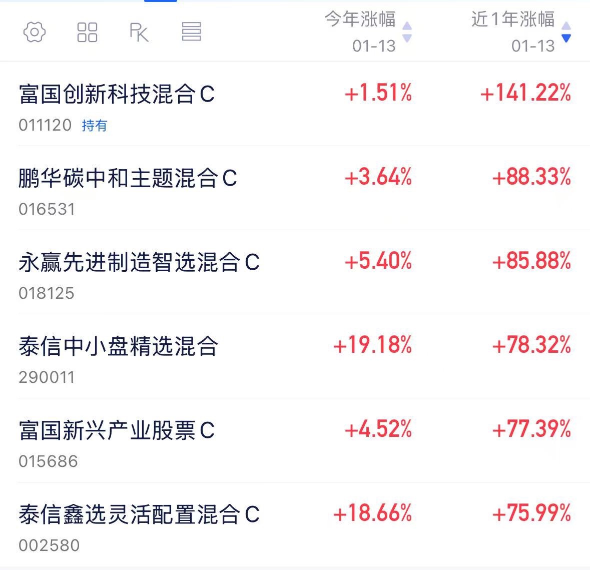 $泰信中小盘精选混合$ 上涨78%
