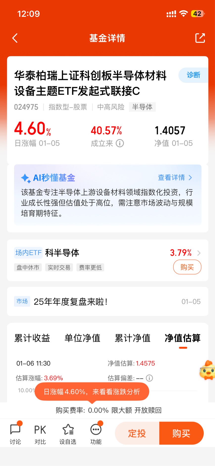 关注半导体的朋友肯定发现了,今天科创半导体设备板块涨得特别猛,这可不是偶然,毕竟半导体存储上行周期已经开启,上游设备材料是半导体产业的“基建”,后续不管是芯片产能扩张还是技术升级,都得靠这些领域撑着,板块的成长性肉眼可见。我自己早就入手了华泰柏瑞的产品,看中的就是它专注科创板半导体设备材料的定位,能精准把握产业链上游的机会,今天这4.6%的日涨幅也印证了选对方向的重要性,趁着存储周期上行的风口,跟着布局再合适不过了。$华泰柏瑞上证科创板半导体材料设备主题ETF发起式联接C$ #2026年有哪些投资机会?#