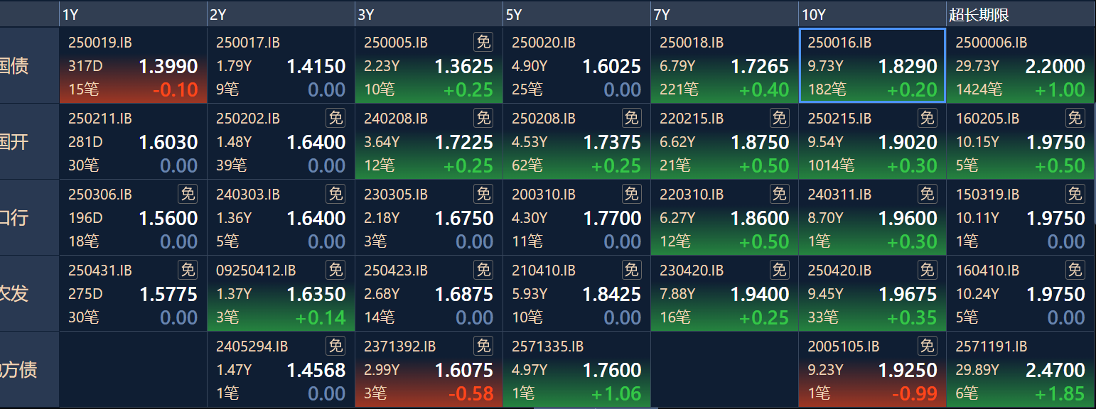二、十年期国债收益率:1.829 0.002%(国债收益率越涨,债市越跌,两者反向关系)