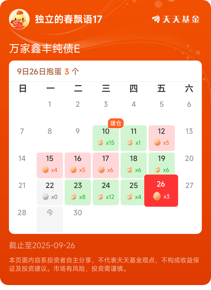 就偏债这里,我还是想着投点万家鑫丰的,利率债为主的也能打,现在买进也能吃到国庆中