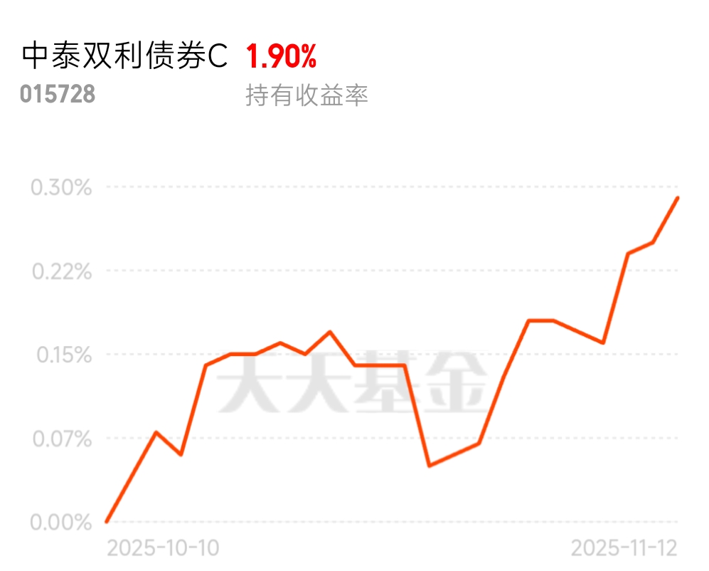 连涨三天。持续攒蛋,实力不错不错。$中泰双利债券C$