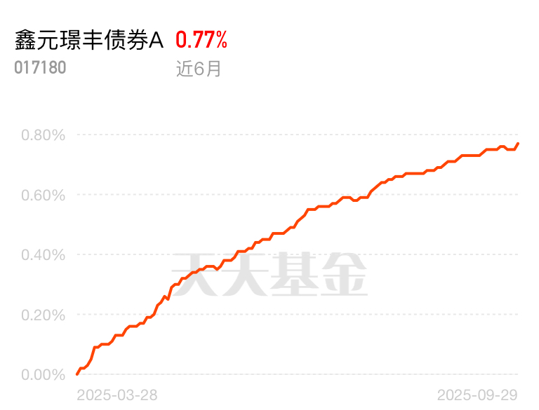 最近债市没什么大动静,稳稳当当的正好赚收益。鑫元璟丰债券A近6个月涨了0.77%