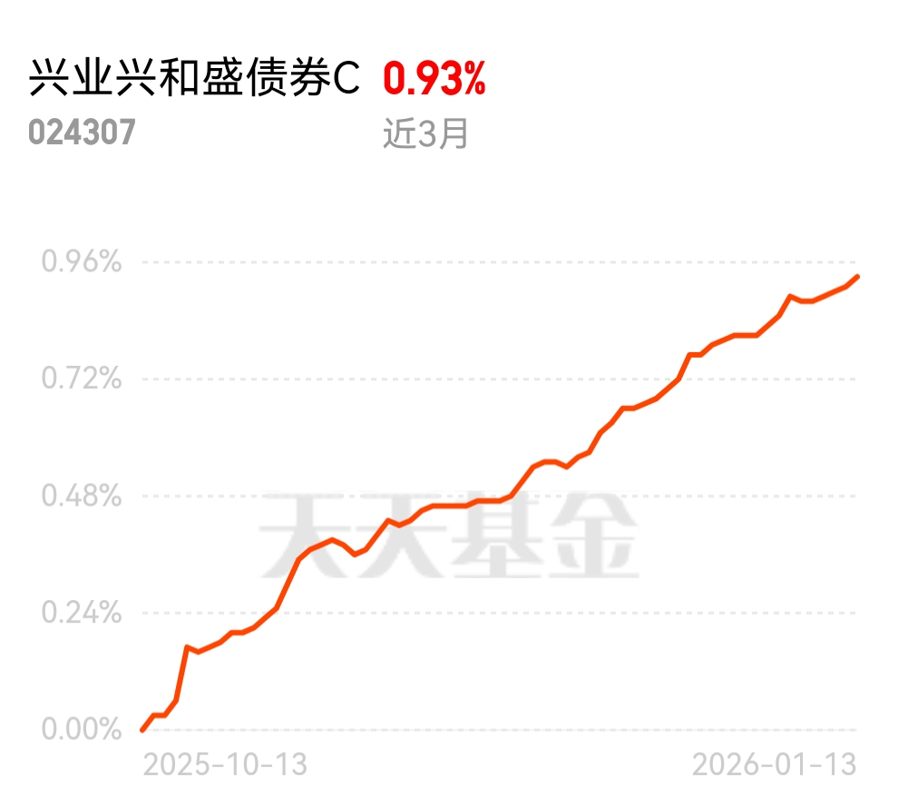 现在纯债基金表现突出,超九成产品都在涨,避险资金都往稳的地方跑。兴业兴和盛债券 C 近 3 月 93 个蛋,今天又稳稳收 2 个蛋,每天都有小收益进账,持有起来踏实又安心。