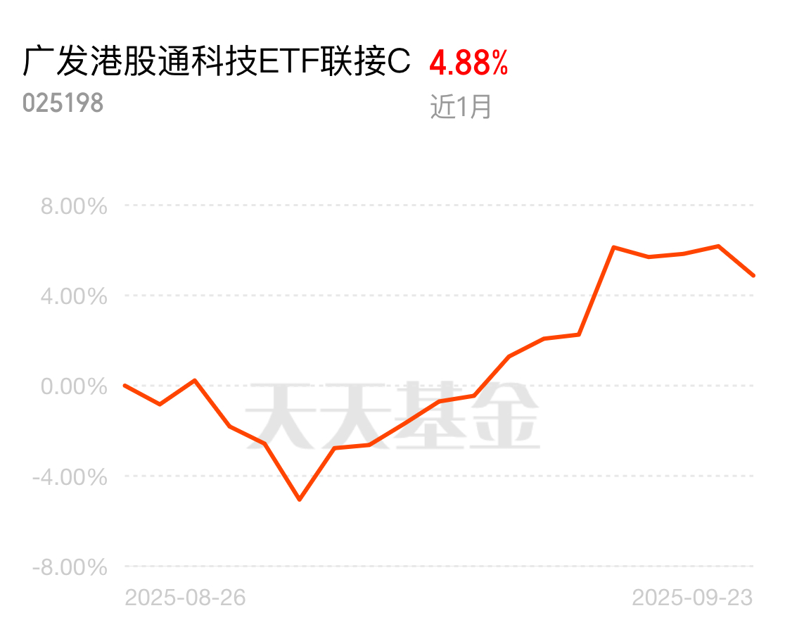 不说废话,$广发港股通科技ETF联接C$跟踪的指数成立以来跌幅仅1.65%,跑赢恒生科技25%以上!现在估值仍在低位,准备和$国泰中证港股通科技ETF发起联接C$ 一起上车了