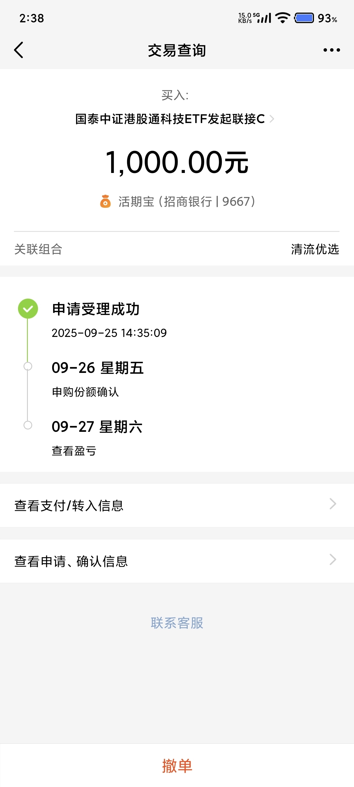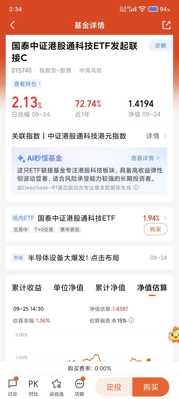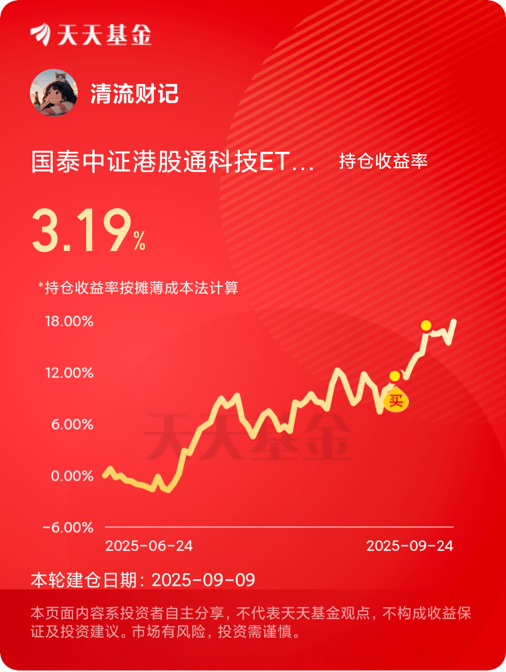 $国泰中证港股通科技ETF发起联接C$ @国泰基金 #晒实盘# #晒收益#