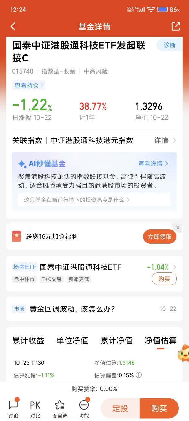 $国泰中证港股通科技ETF发起联接C$ #晒实盘# @国泰基金