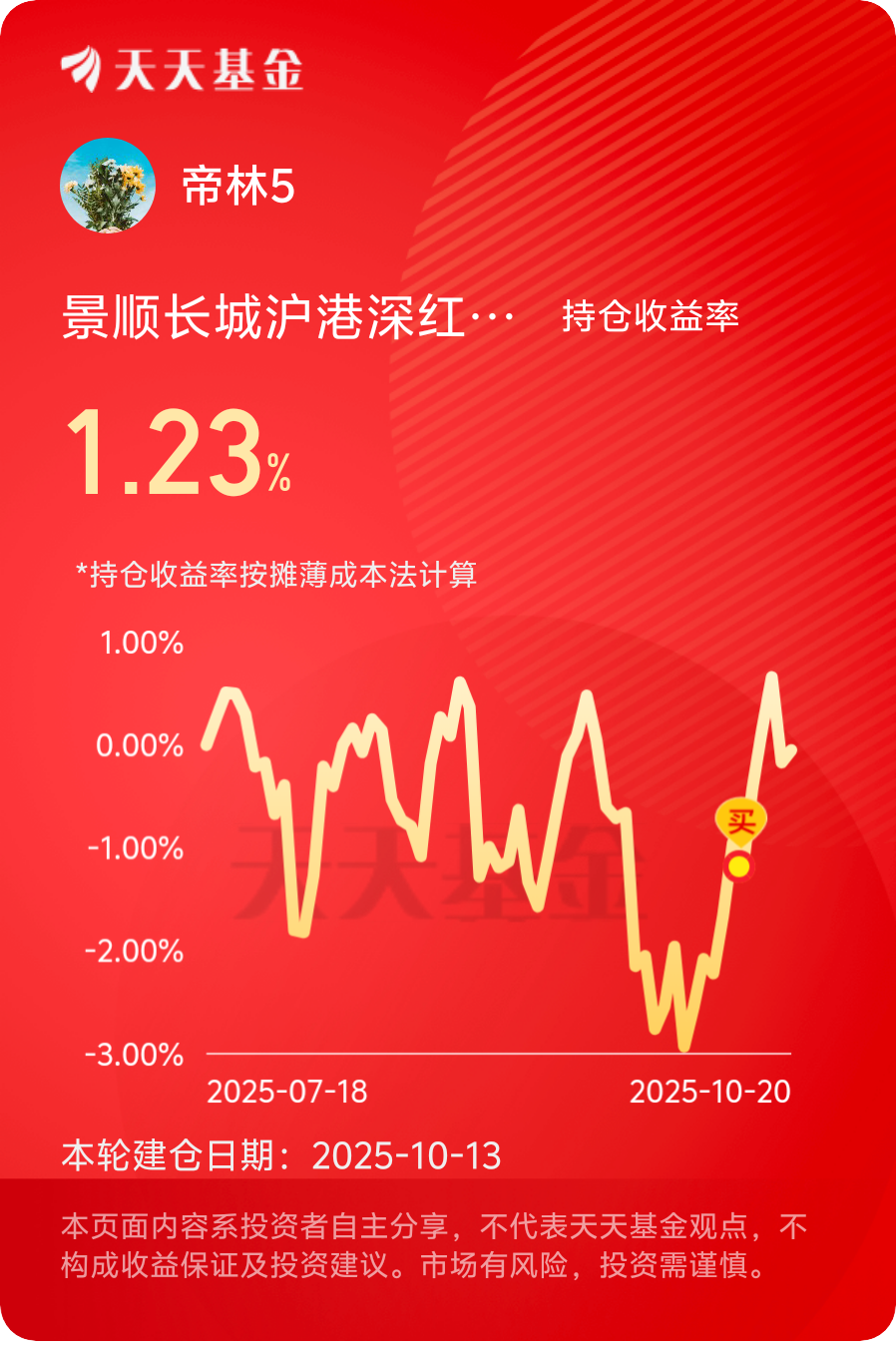科技波动大,红利可以避险。景顺这只红利指数连续18个季度分红,七天免赎回费。#晒收益#