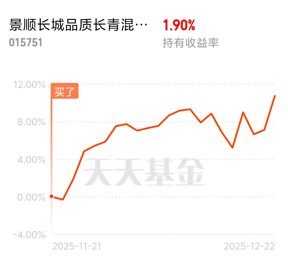 昨天科技和消费板块都不错,这基两边都沾光,收了把大的。$景顺长城品质长青混合C$