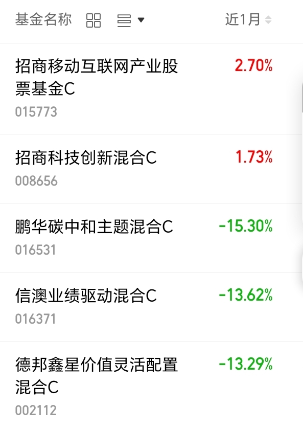 $招商移动互联网产业股票基金C(OTCFUND|015773)$近一个月上涨2.70%;