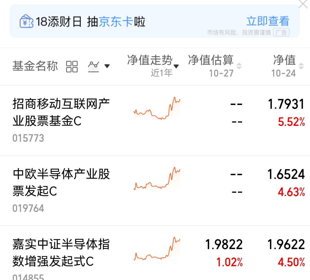 $嘉实中证半导体指数增强发起式C(OTCFUND|014855)$涨幅4.50%