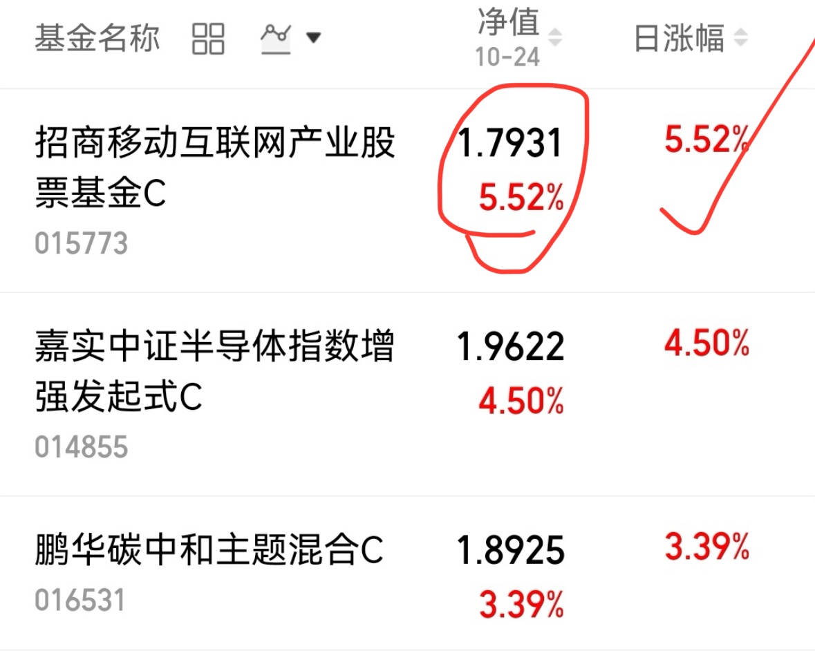 $招商移动互联网产业股票基金C$ 上周五涨幅5.52%