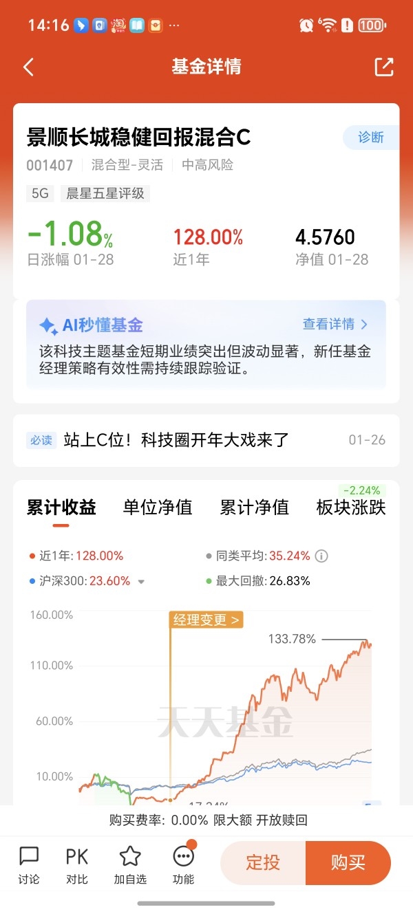 今年主线还是得配科技。看了下,景顺这只业绩很能打,准备转点过去。