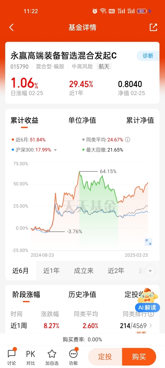 永赢高端装备015790是主投卫星互联网的基金,持仓纯粹弹性超高,昨天净值大涨1.06%,近六个月涨51.84%,$永赢高端装备智选混合发起C$ 这只基主投商业航天,卫星互联网等方向,持仓的海格通信,信维通信,中国卫通等都是好公司好股票,周三继续加油。