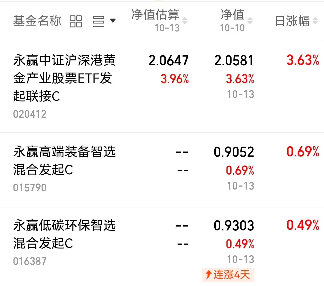 发现永赢智选家族今天居然有几只逆势上涨,我们一起来看看今日的净值表现:
