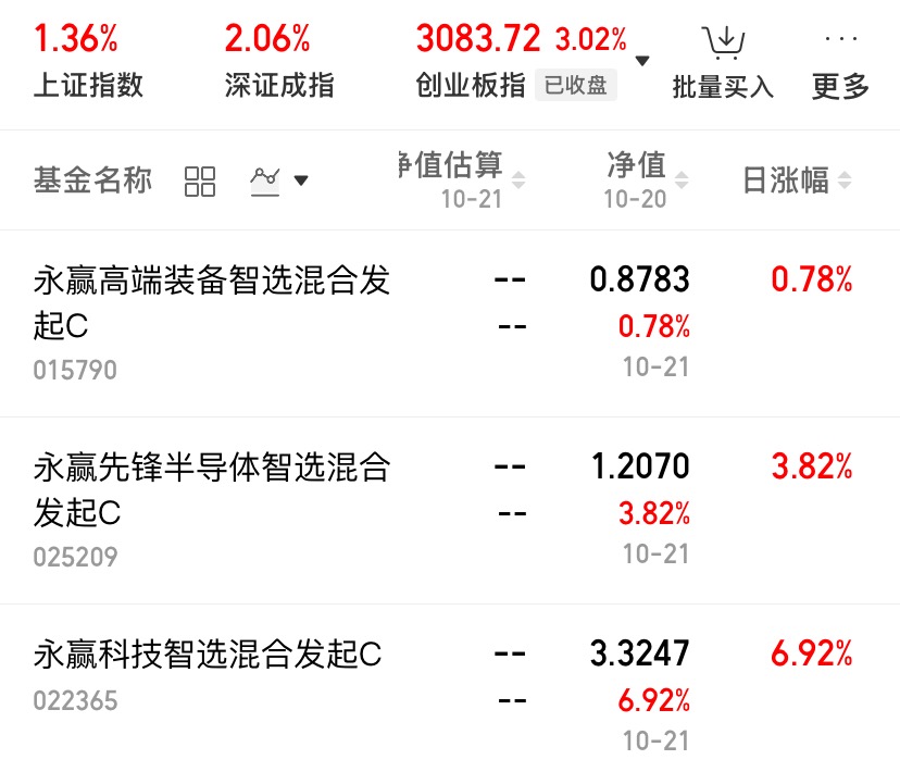 $永赢科技智选混合发起C$ :主投热门赛道科技板块,今天大涨6.92%,近六月收益197.38%;