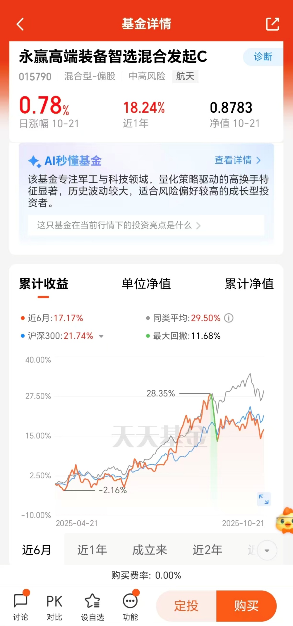 作为永赢智选系列的重要成员,它和系列里的机器人龙头永赢先进制造、算力领域的永赢数字经济,还有重仓港股创新药的永赢医药创新一样,都有着鲜明的专精特色——它是全市场第一只专门瞄准商用航天与卫星通信领域的基金。更值得一提的是,它和永赢先进制造出自同一位基金经理张璐之手,聚焦军工与高端装备赛道,弹性相当可观,不少交易日里单日涨幅都能超过5%。业绩表现也很亮眼,近三个月上涨10.42%,近六个月涨幅达17.17%,过去一年更是收获了18.24%的增长,长期收益能力经得起检验。
