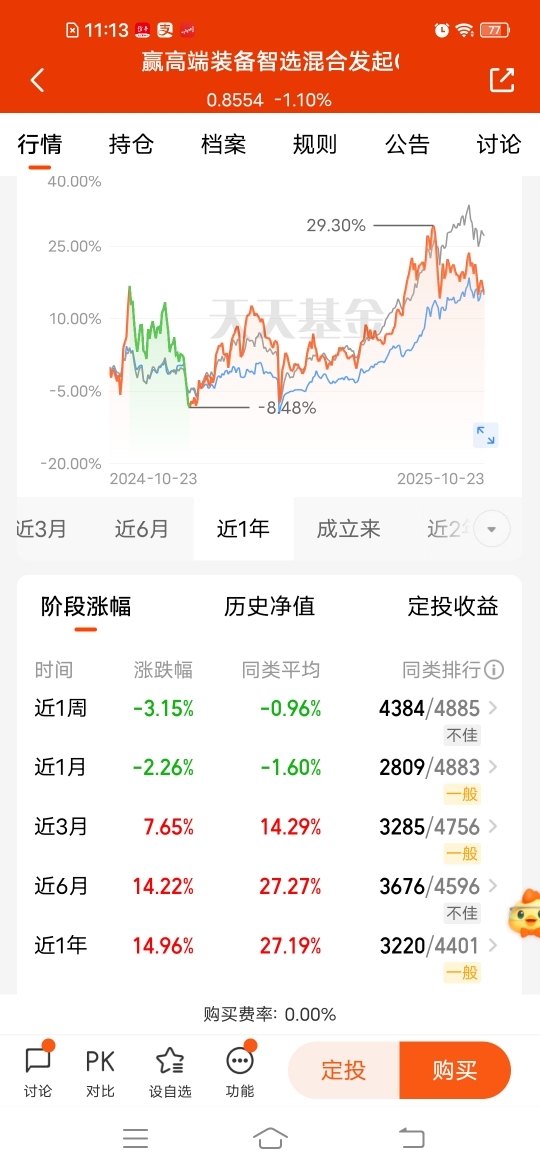 $永赢高端装备智选混合发起C$调整后布局更值得期待,今天持仓不错,近三个月涨幅7
