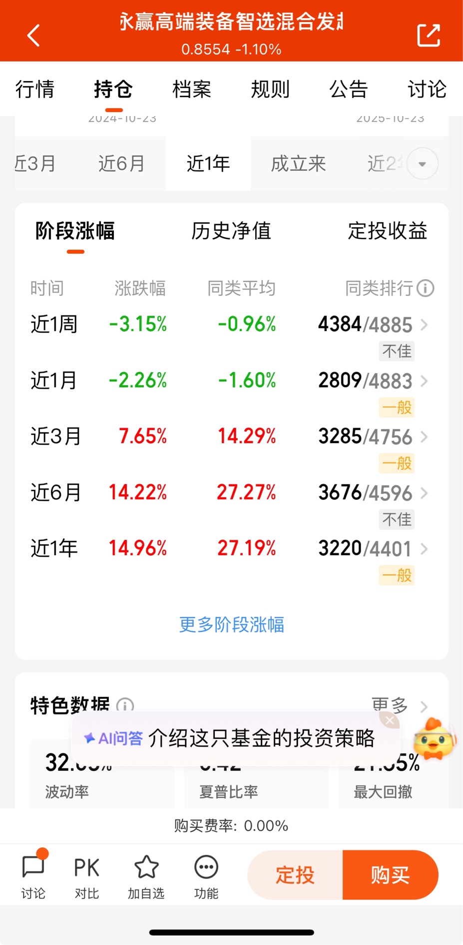 $永赢高端装备智选混合发起C$今天的估值还是挺红的,是时候逆转了。近3个月收7.