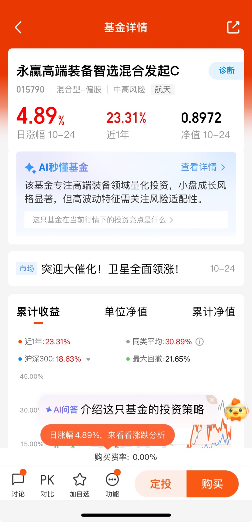 $永赢高端装备智选混合发起C$上周五收4.89%,近3个月收11.73%,近6个