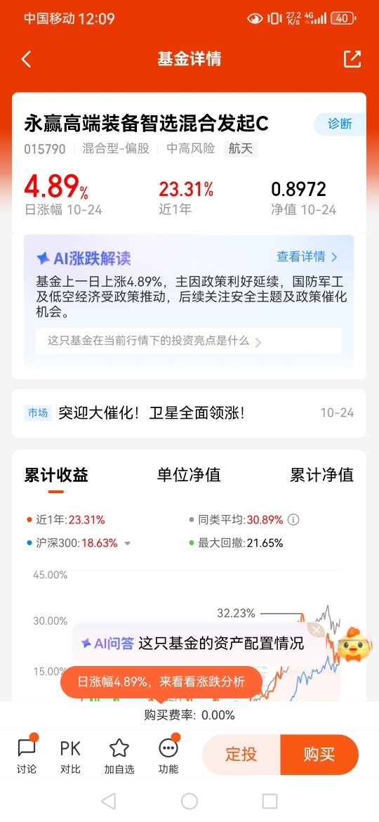 #沪指再创十年新高!接下来你会如何操作?# 卫星互联网是通过规模化卫星组网实现全球覆盖的新型网络,具备广覆盖、低延时、低成本、全天候特点,核心作用于通信、导航、遥感三大领域。专注于卫星互联网领域的基金永赢高端装备智选混合发起C上周五上涨+4.89%,近一年涨幅+23.31,机会在自己手上呀