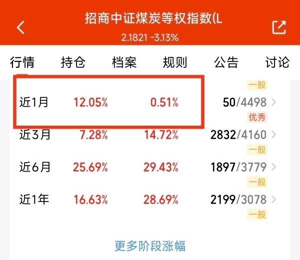 今天有关注到$招商中证煤炭等权指数(LOF)C$ 这只聚焦煤炭的指数基金。紧密跟踪中证煤炭等权指数。全面覆盖了煤炭产业上下游产业。近1月上涨12.05%。同类业绩稳居第一。基金长期跟踪指数精准度高。整体表现做到了涨多跌少。而且采用指数化投资。不用担心,主动调仓带来波动风险。我看好未来在煤炭板块中上涨的成长表现。准备开始布局了。#小金属概念狂飙!行情逻辑是什么?# $富国中证红利指数增强C$ $华泰柏瑞中证红利低波ETF联接C$ $东方红中证红利低波动指数C$