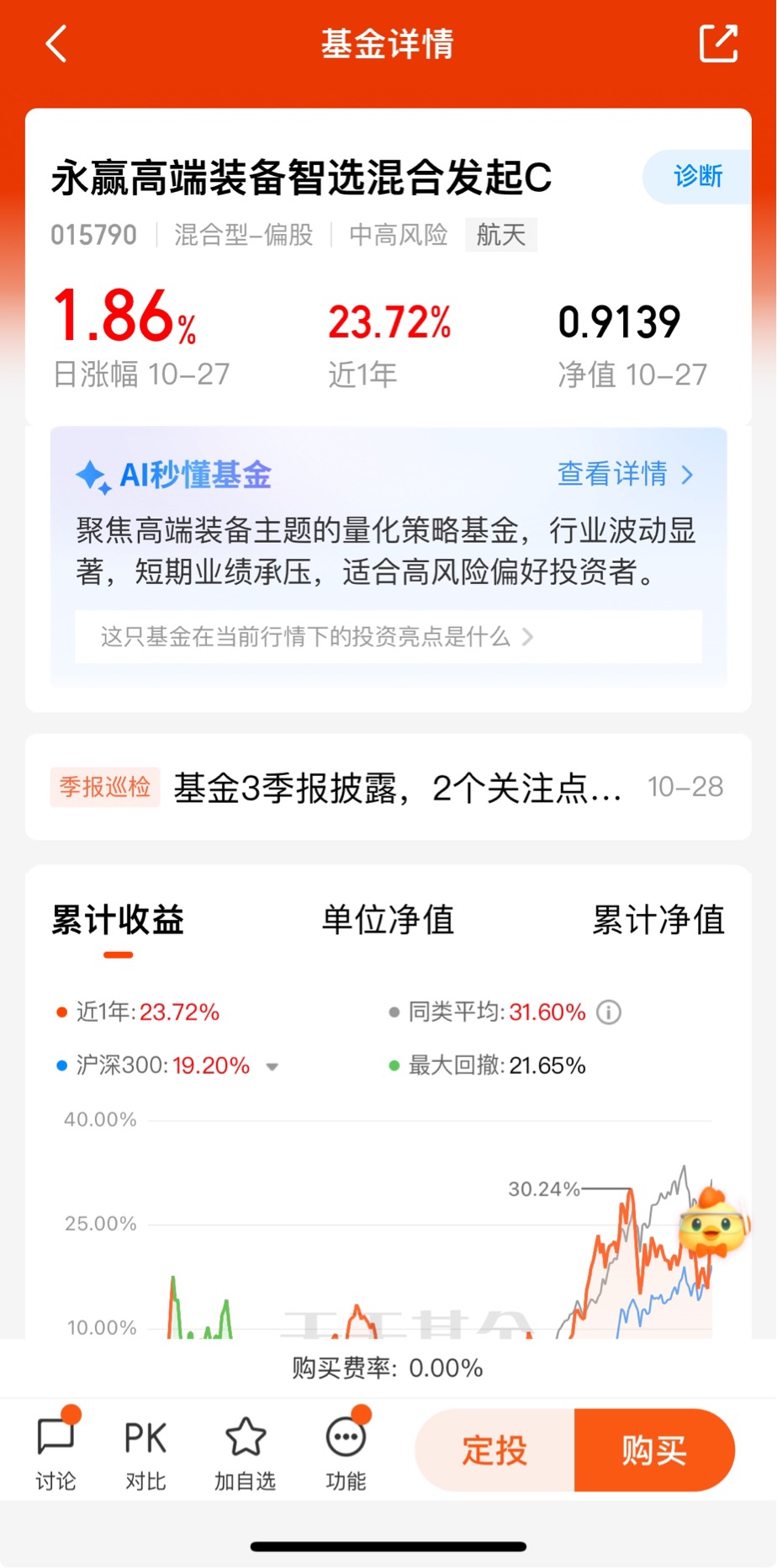 $永赢高端装备智选混合发起C$ 昨天收1.86%,近3个月收13.26%,近6个月收23.43%,还有发展!作为全市场首只专注商用航天与卫星通信的基金,成为普通投资者把握太空经济红利的理想工具!张璐拥有10年以上军工与高端装备研究经验,擅长在产业变革中挖掘高成长标的。
