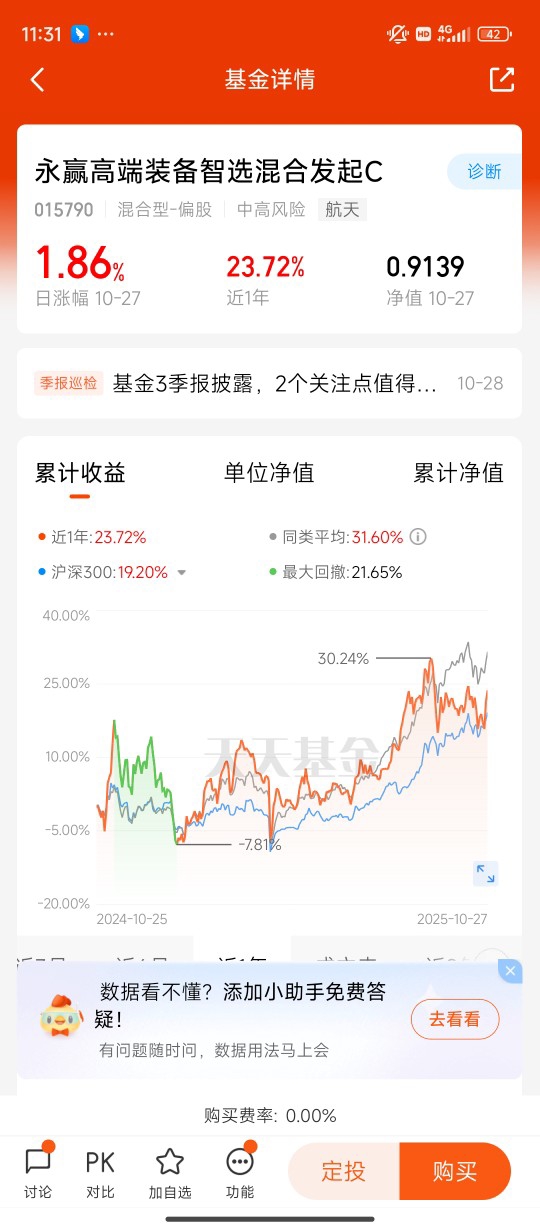 #科技热点摊开业啦# 卫星互联网迎来新的机遇,叠加各种政策扶持,行业处于高速发展阶段,$永赢高端装备智选混合发起C$ 昨晚大涨1.86%。近三月涨幅达到13.26%。整体估值低,打折筹码捡起来。商业航天研发应用提速,未来发展空间大,看好赛道投资性价比。