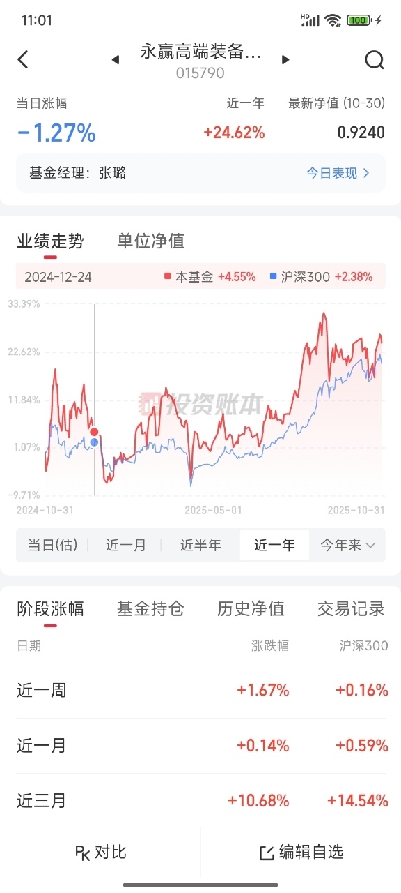 今日市场震荡回调,很多板块都出现调整,前面没上车的人,可以趁这波回调上车了,永赢高端装备015790是主投卫星互联网,持仓纯粹弹性超高,近六个月收益率24.01%,持仓的海格通信等都是牛股,这只我加入自选了,等发工资上车。