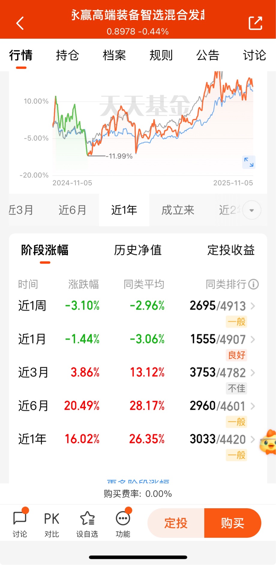 $永赢高端装备智选混合发起C$趁调整的时候就配置起来了,近3个月收3.86%,近