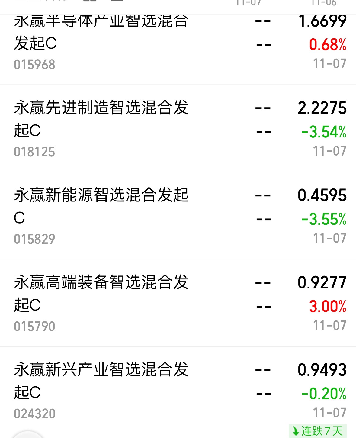 看看今天永赢智选系列的表现:$永赢新能源智选混合发起C$ 掉3.55%近3个月收13.46%表现优秀。关注新能源车智驾和机器人双赛道。$永赢高端装备智选混合发起C$ 今天收3%近6个月收19.80%它是市场中唯一明确围绕卫星互联网全产业链(制造、发射、运营)展开投资的主动权益类产品。$永赢新兴产业智选混合发起C$ 今天掉0.20%近3个月收3.30%表现优秀!深度聚焦北交所,之所以能在北交所行情中脱颖而出,关键在于其差异化的投资策略。