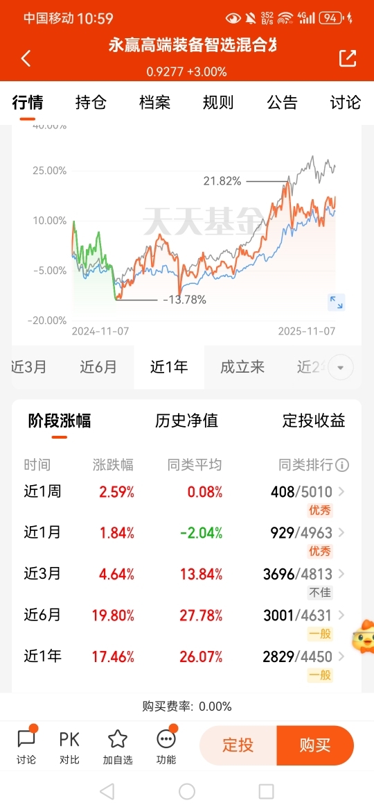 专注于卫星互联网领域的基金永赢高端装备智选混合发起C上周五上涨3.00%,近三个