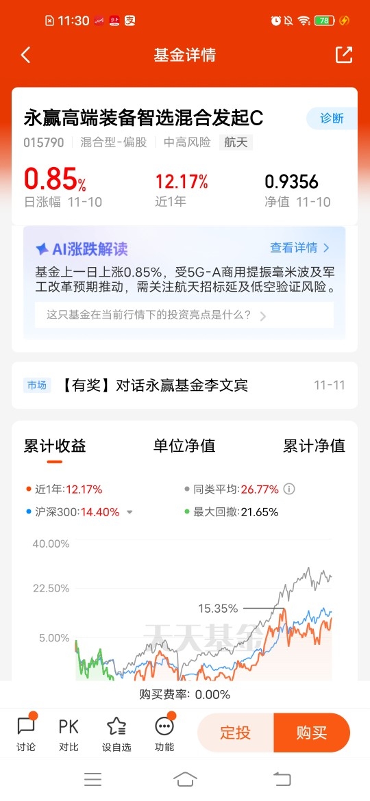 $永赢高端装备智选混合发起C$ 目前挺适合收集点筹码,坐等反弹,昨天涨幅0.85%,近一个月涨幅4.07%,近半年涨幅21.18%,近一年涨幅12.17%,这个主投卫星互联网,卫星互联网,估值低布局更有力度,不能错过这波机会,主动型基金具有较低的费用比率,一般流动性较好,持仓都是高科技赛道,值得期待。#AI应用类股票大涨:短剧概念逆势走强#