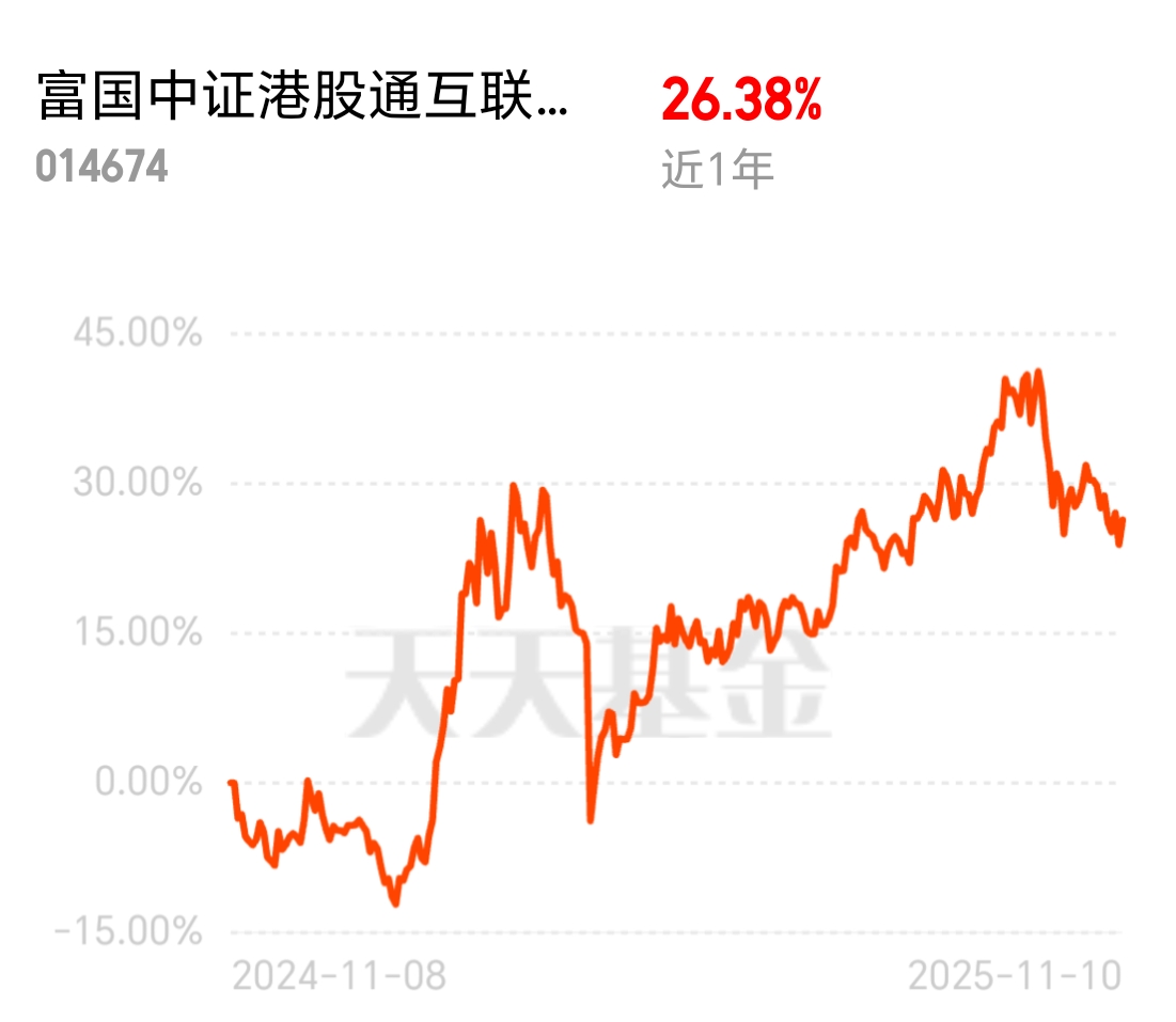 配了永赢高端装备智选C,顺手搭了点富国中证港股通互联网ETF联接C,港股互联网龙头扎堆,分位比过去五年78%的时间都便宜,106亿大盘子拿得住。$富国中证港股通互联网ETF发起式联接C$