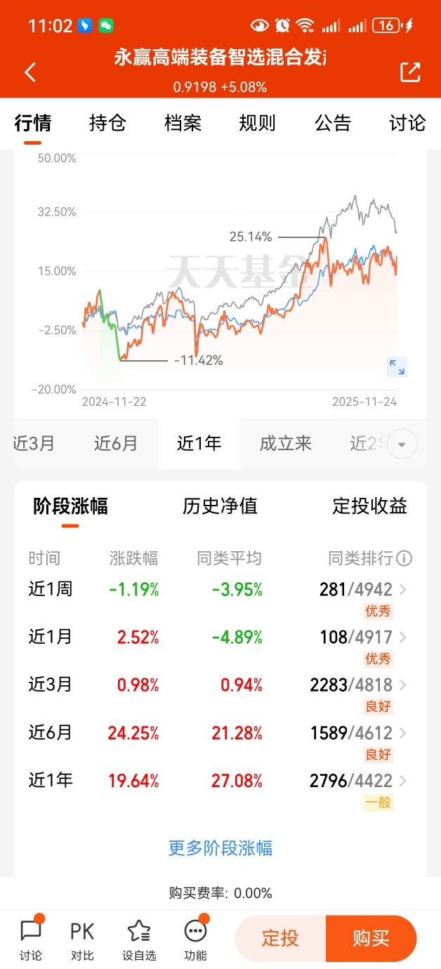 卫星互联网强势反弹,$永赢高端装备智选混合发起C$昨天大涨+5.08%,是全市场