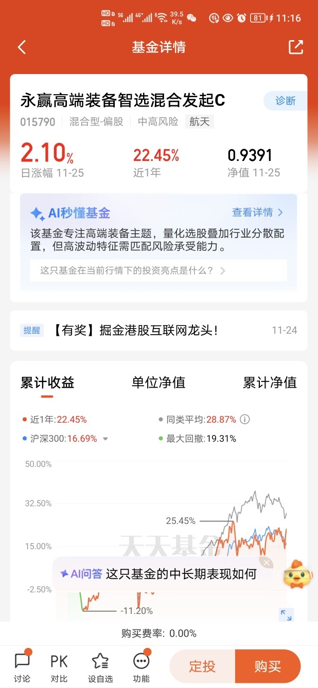 卫星互联网板块近期利好不断,政策支持与市场需求双轮驱动下成长逻辑愈发清晰,而$永赢高端装备智选混合发起C$ 正是专精于这一赛道的投资利器,这只基金持仓主要涉及卫星互联网、航天航空等板块,基金弹性大。这种聚焦属性让它能深度捕捉卫星互联网产业从政策支持、技术突破到商业化落地的全周期成长红利,不会被其他赛道分散精力。#流感药订单飙涨14倍 医药板块走强!#