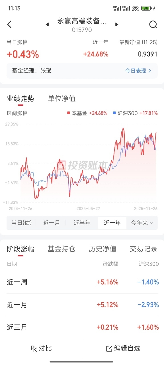 这几天表现不错,情绪明显好起来了,永赢高端装备015790是主投卫星互联网,持仓纯粹弹性超高,近六个月收益率26.85%,今天估值又涨0.43%,持仓的中国卫通,海格通信等等都是好股票,期待多往上冲冲。