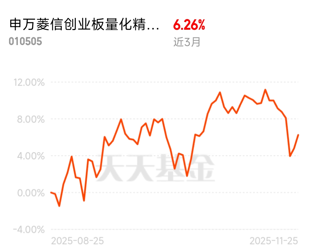 手里持有的基金没什么动静,不如换个强势赛道,创业板今天大涨太吸引人了。CPO和创新药带头领涨,申万菱信创业板量化精选股票C近3个月涨6.26%,人机智能并行选股,既能抓收益又能控风险,前段时间回调,现在上车正好。