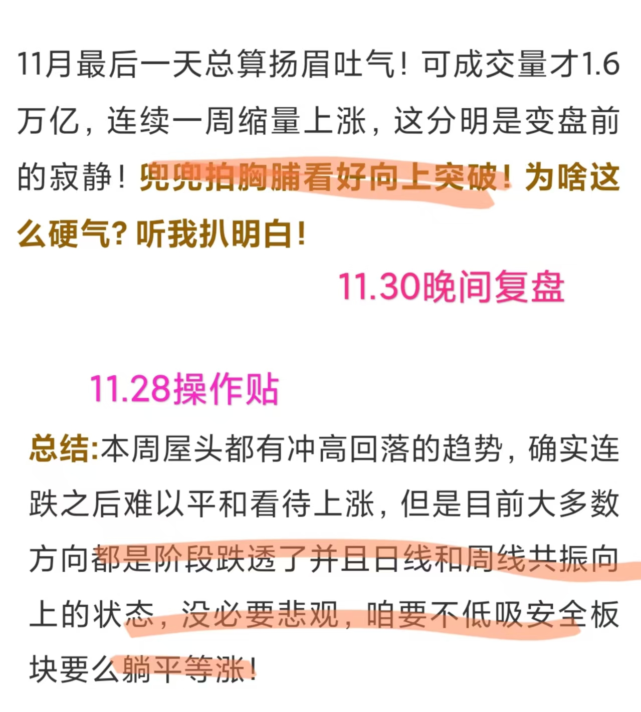 还记得上周盘面缩量上涨时,兜兜天天在这给大家打气吗?都说了低开不是风险,是主力送钱上门!千万别被洗出去当绿油油的“韭菜”!