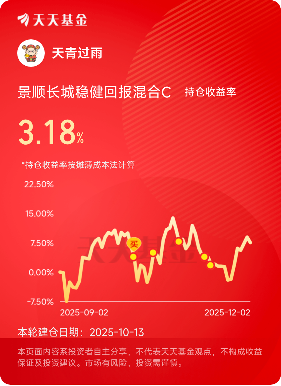 #今年你的投资目标达成了吗?# 当下科技板块的逻辑越来越清晰:政策给支持、技术有突破、资金在流入。这只近一年翻倍的科技基,不仅踩准了节奏,还由经验丰富的经理掌舵$景顺长城稳健回报混合C$ #晒收益#