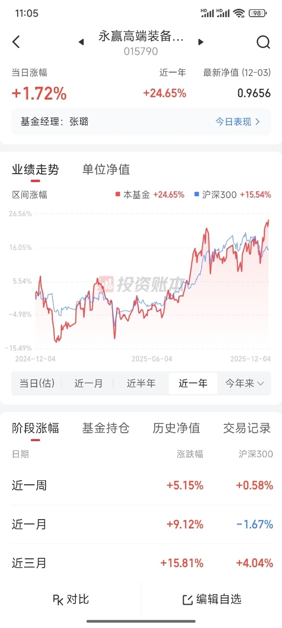 A股经过前面的调整,今天终于红了,有望开启新一波行情,准备上车永赢高端装备015790,今天估值大涨1.72%,这基主投卫星互联网,持仓纯粹弹性超高,近一年收益率20.46,业绩不错,买这只是个不错的选择。