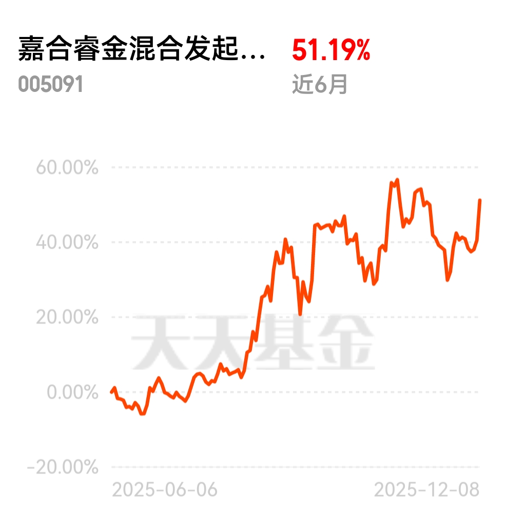 基金界的黑马!嘉合睿金混合 C 昨天 7.59% 暴涨,近六月 51.19% 狂赚,当下位置正合适,不管是新手入门还是老司机加仓,都赶紧冲!$嘉合睿金混合发起式C$