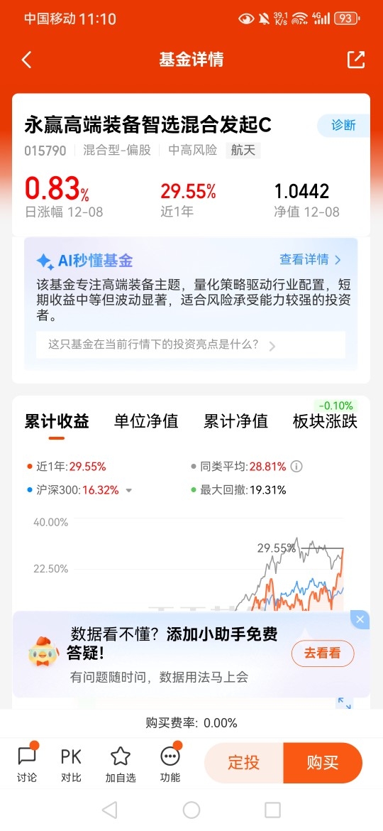 #12月基金投资策略# 卫星互联网是通过规模化卫星组网实现全球覆盖的新型网络,具备广覆盖、低延时、低成本、全天候特点,核心作用于通信、导航、遥感三大领域。$永赢高端装备智选混合发起C$ 专注于卫星互联网领域,昨日上涨+0.83%,近一年涨幅+29.55%,未来可期