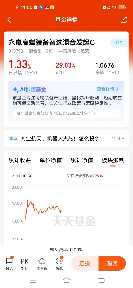 $永赢高端装备智选混合发起C$卫星趋势来了,昨天涨幅1.33%,近一周涨幅10.