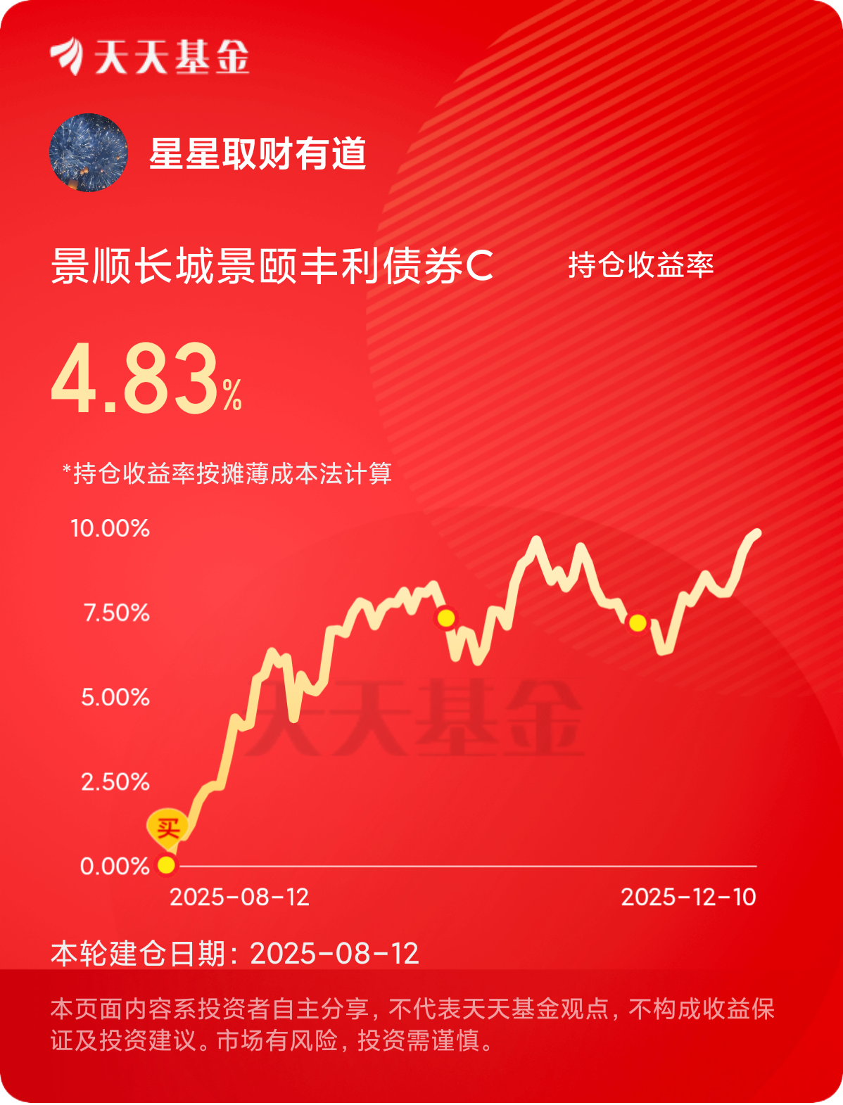 #美联储宣布降息25个基点 如何布局?# 美联储降息落地,利好股市和债市,看好中长期科技发展,担心短期波动的可以借道景颐丰利这种含科技仓位的混债参与一下$景顺长城景颐丰利债券C$ #晒收益#