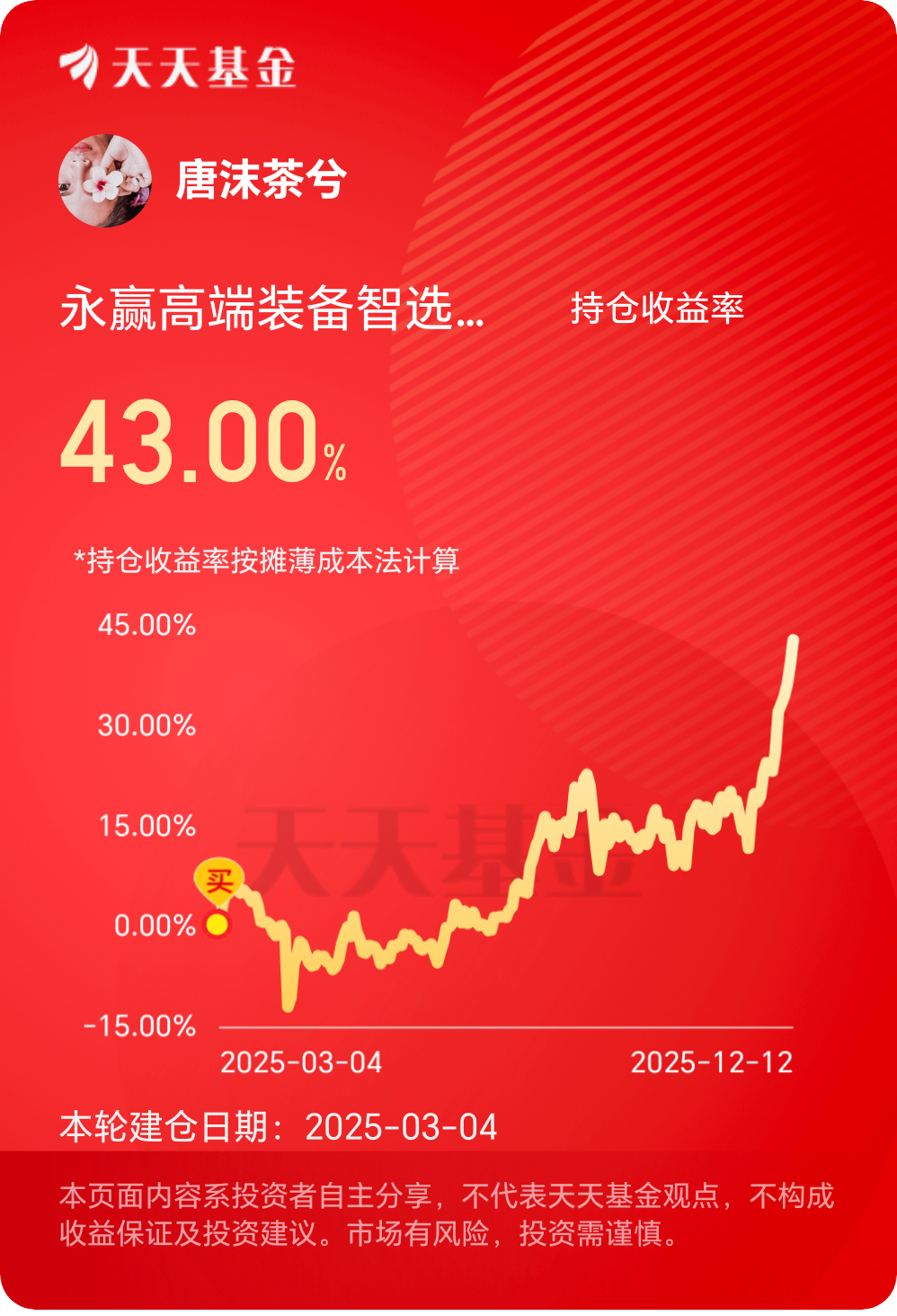 有逆势上涨了,太强了,忍不住想加点仓位了$永赢高端装备智选混合发起C$ #晒收益#