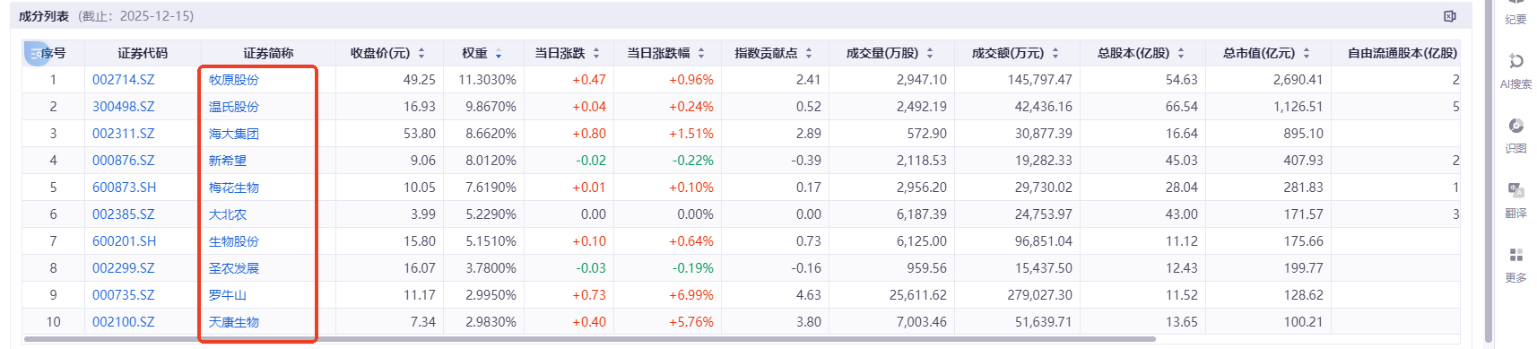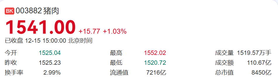 今天猪肉板块走强,正邦科技、天康生物涨超7%,牧原股份、温氏股份、海大集团涨超1%。