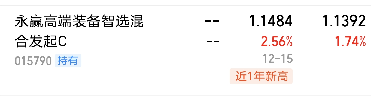 $永赢高端装备智选混合发起C$ 主要关注的是,卫星互联网方向,这边的成长潜力也是挺不错的,最近已经连续上涨八天了,今晚涨幅2.56,净值创下最近一年的新高。