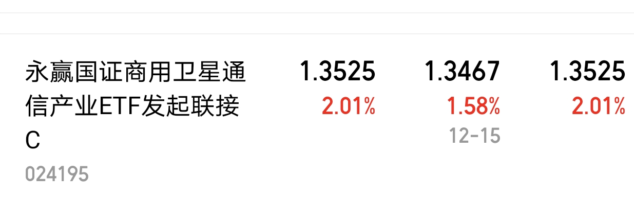 $永赢国证商用卫星通信产业ETF发起联接C$ 投资的也是非常具有潜力的方向,商用卫星未来的市场空间还是非常广阔的,今天涨幅1.58,后市可期。