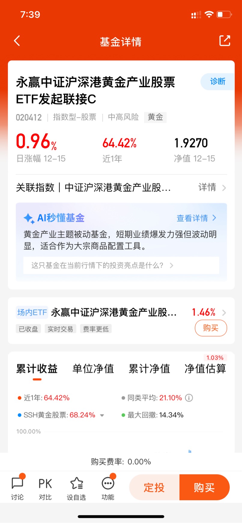 $永赢中证沪深港黄金产业股票ETF发起联接C$ 这里一键把握黄金产业投资机会,今天涨了0.96%,四天三涨,状态还是不错的,近一年涨超64%,业绩表现优秀亮眼,还是很值得期待的!